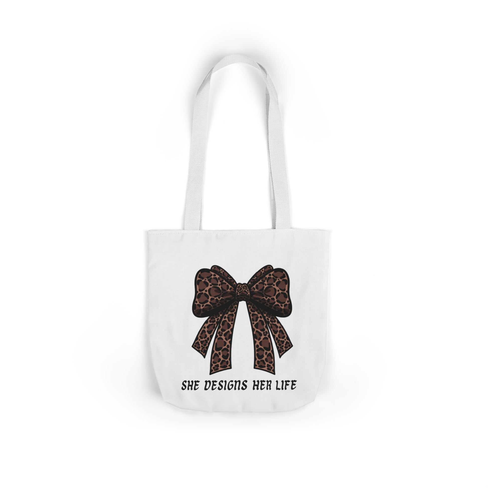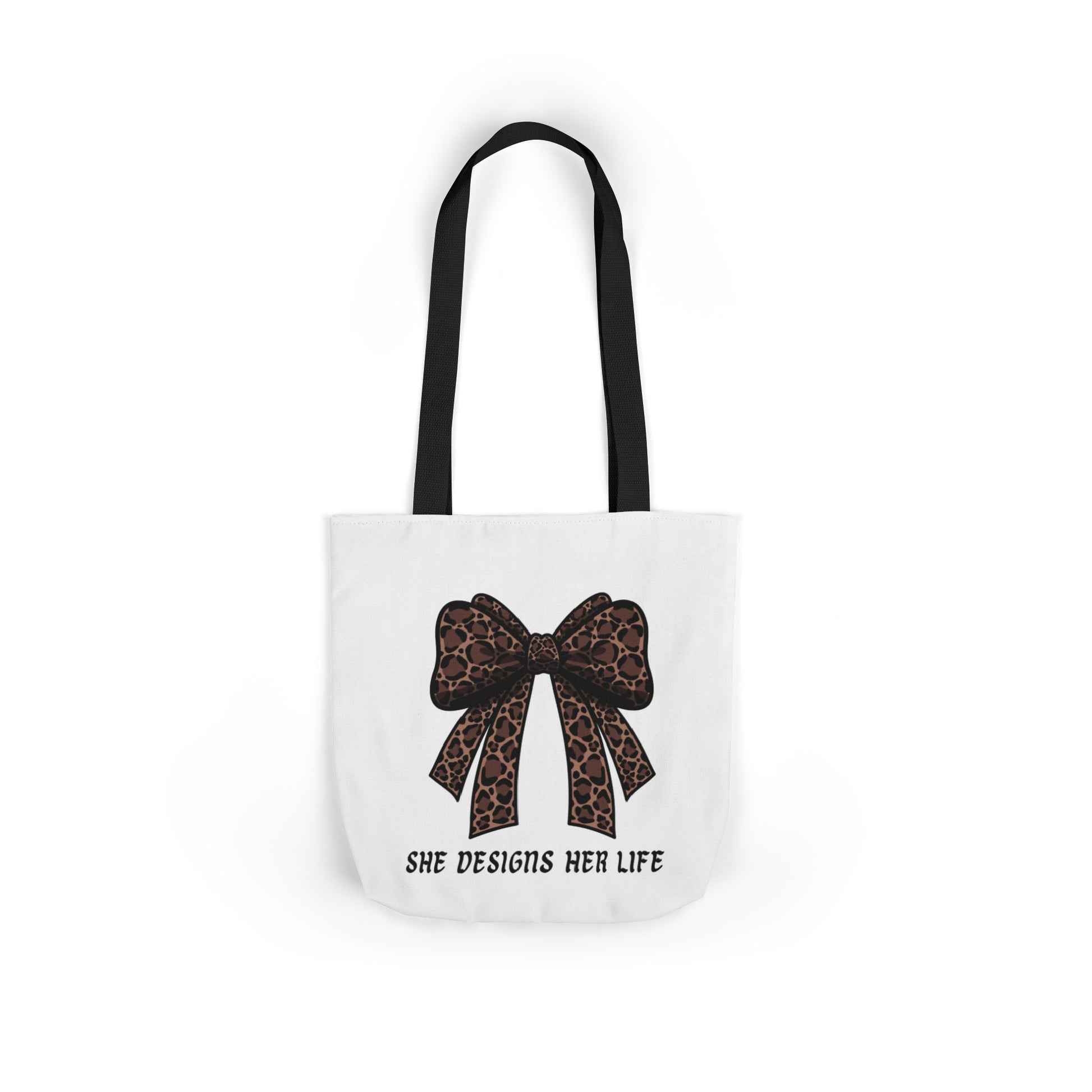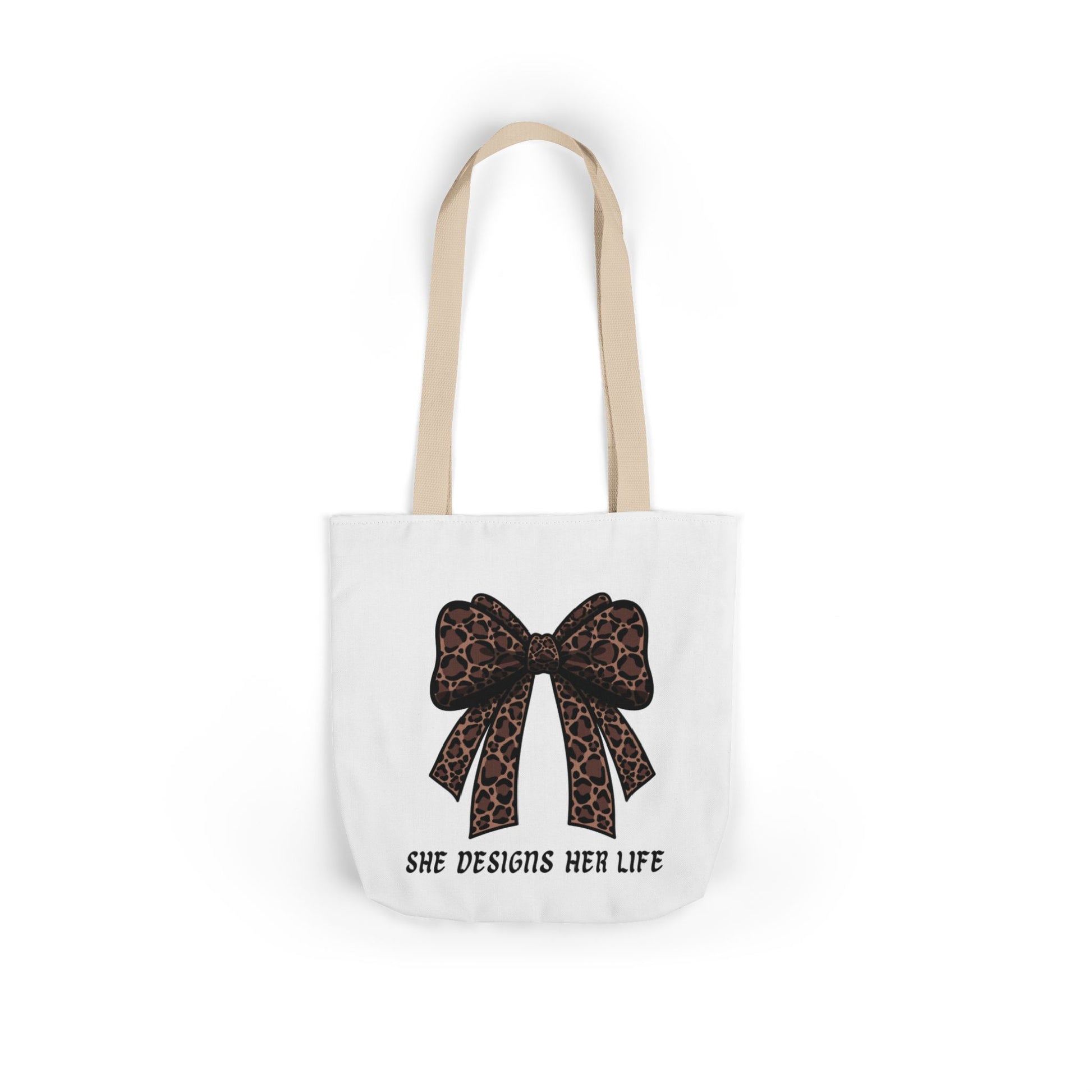 Canvas Tote — "She Designs Her Life" Leopard Bow Tote Bag