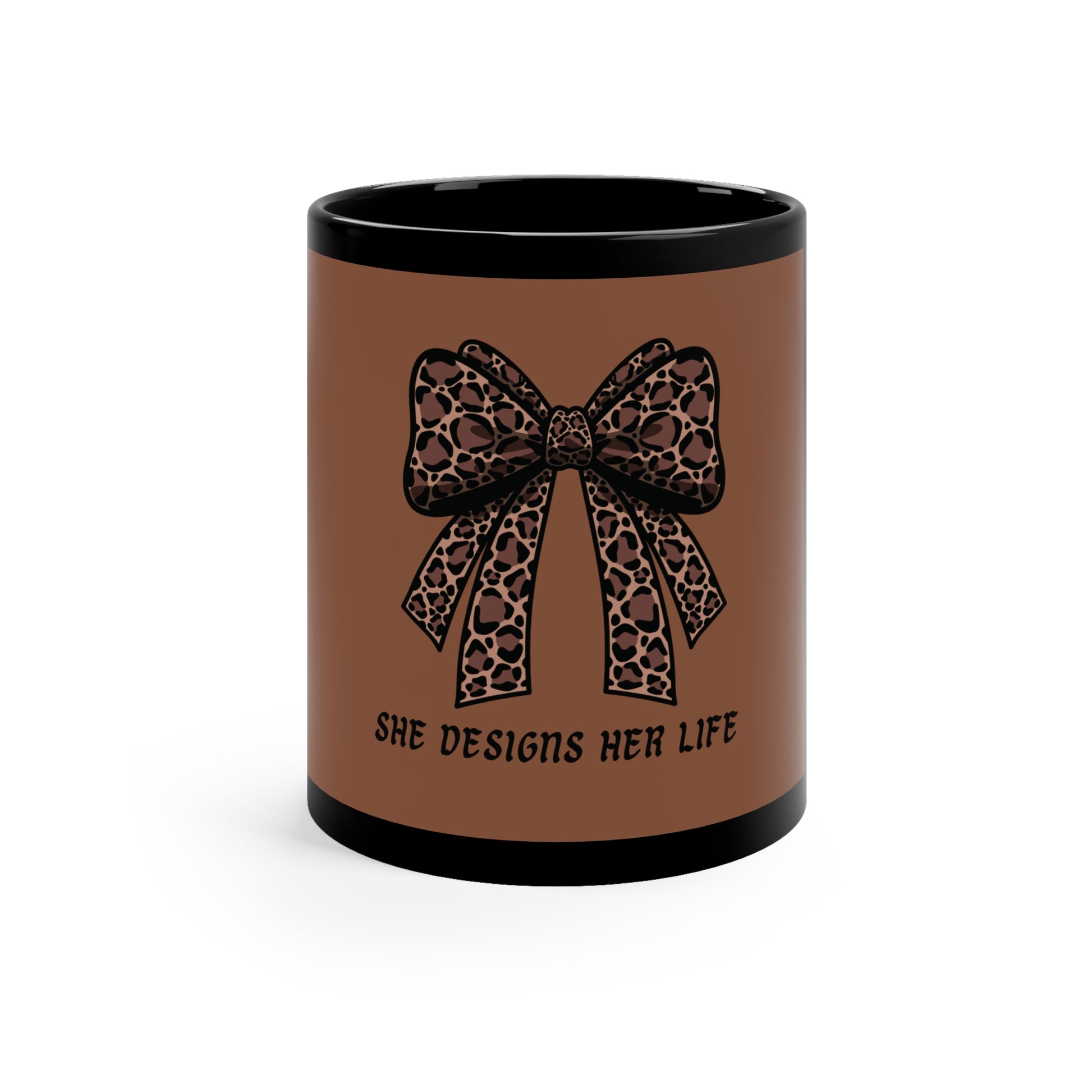 She Designs Her Life Leopard Bow Mug — Empowerment Coffee Cup (11 oz)